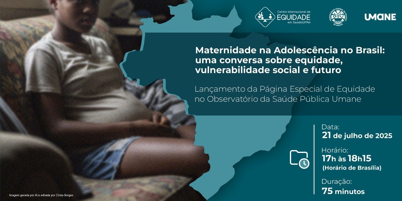 O Centro Internacional de Equidade em Saúde (ICEH/UFPel), em parceria com a Associação Umane, realiza na próxima segunda-feira, 21 de julho, às 17h, a live “Maternidade na Adolescência no Brasil: uma conversa sobre equidade, vulnerabilidade social e futuro”. O evento, que será transmitido ao vivo pelo canal da UFPel no Youtube, apresentará pela primeira vez os resultados de abrangente estudo sobre o tema e reunirá um painel de especialistas para debater os dados e suas implicações para as políticas públicas.